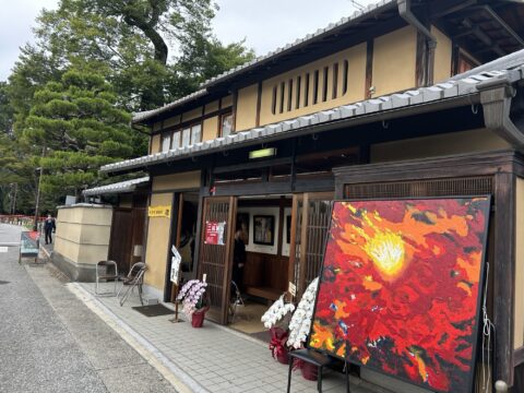 今日から影山潤子さんによるアクリル画個展が開催されています。上賀茂近辺は今朝から寒いぐらい冷え込んで来ました。社家町space椋にお越しの際には、上に羽織れるものを持ってお越しください。